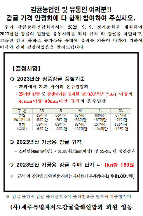 감귤 가격 안정화에 다함께 참여하여 주십시오