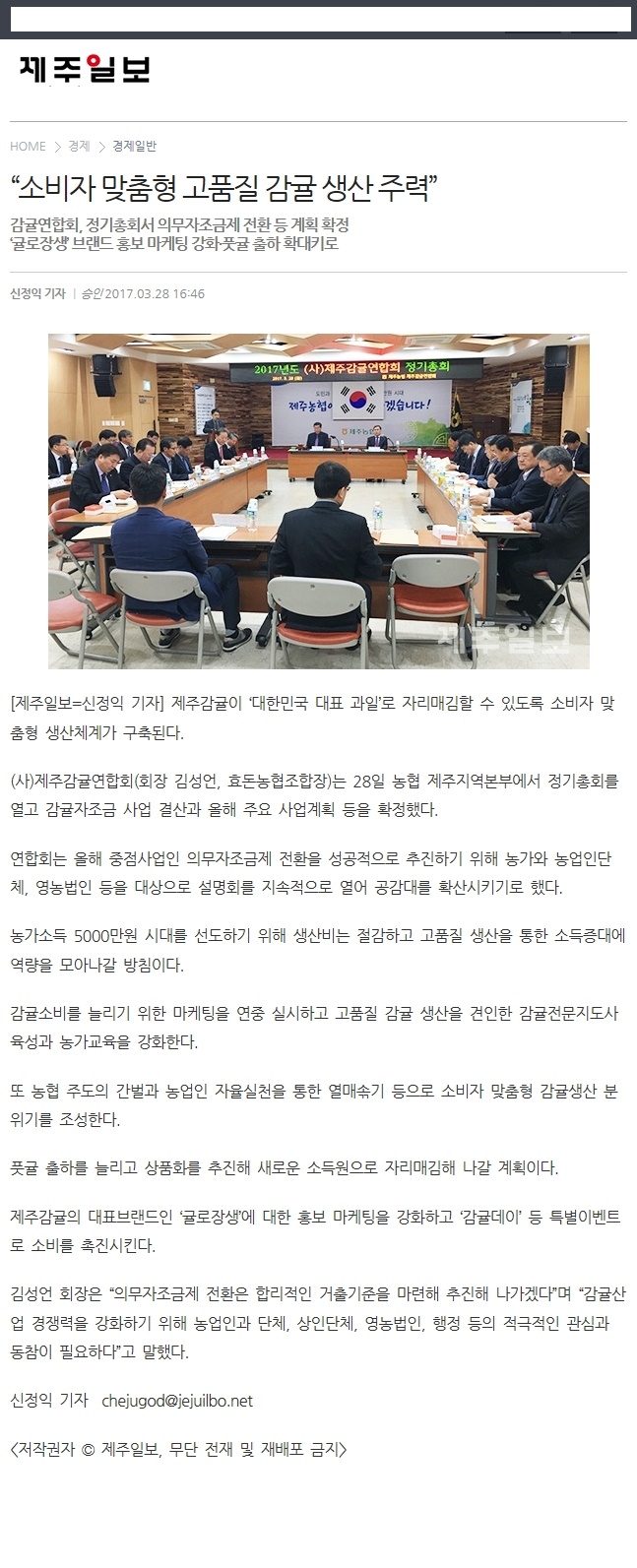 "소비자 맞춤형 고품질 감귤 생산 주력"