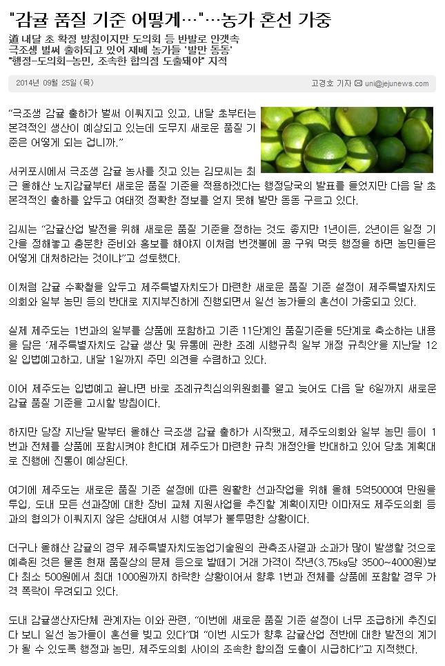 "감귤 품질 기준 어떻게.."...농가 혼선가중