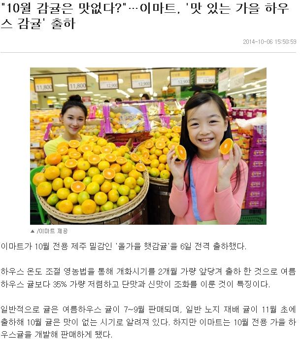 "10월 감귤은 맛없다?"...이마트, "맛있는 가울하우스감귤" 출하