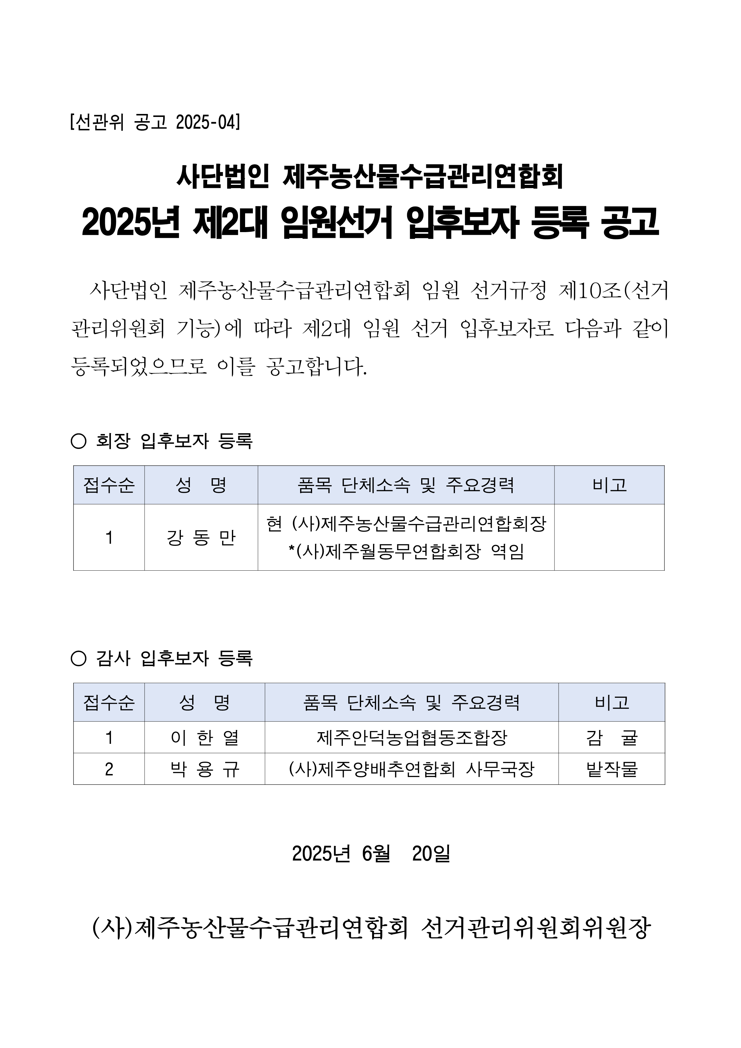 [공고] 2025년 제2대 임원선거 입후보자 등록 공고